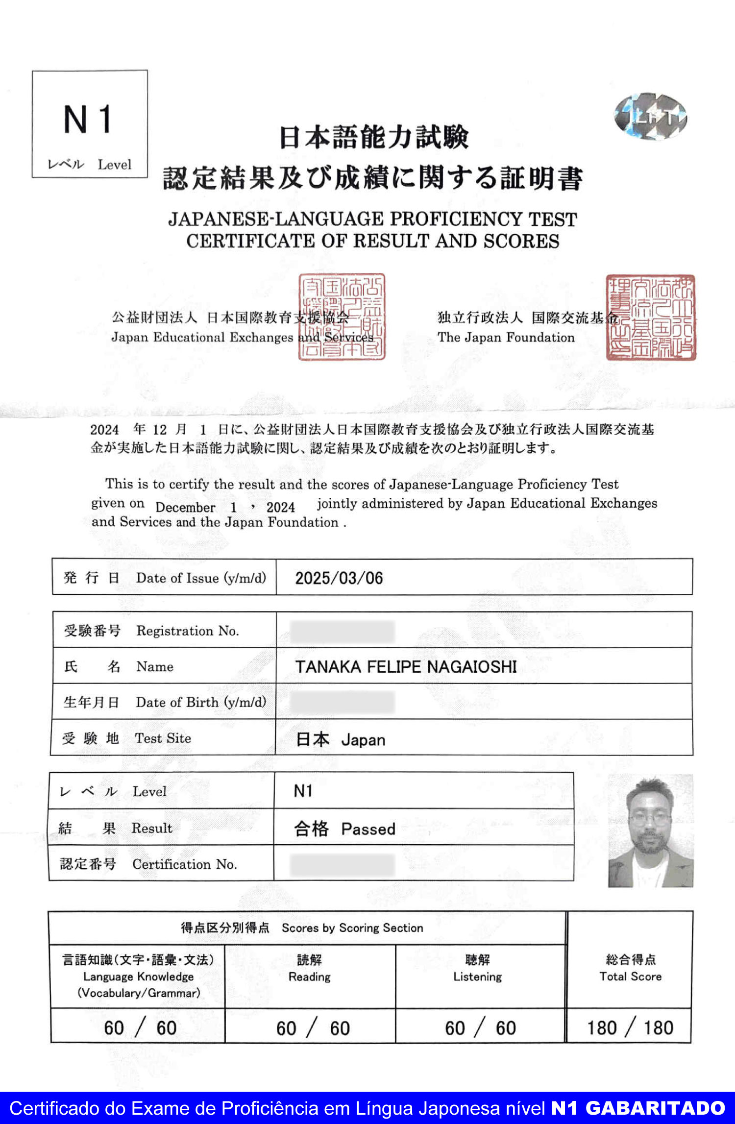 Mas pode ficar tranquila! O professor Hiru aqui possui mais de 25 anos de vida no Japão, certificado do N1 e trabalhei em diversas empresas japonesas 🏢. Vou deixar abaixo o meu perfil juntamente com os certificados para que você possa ter confiança de que sou um professor de qualidade 💯.